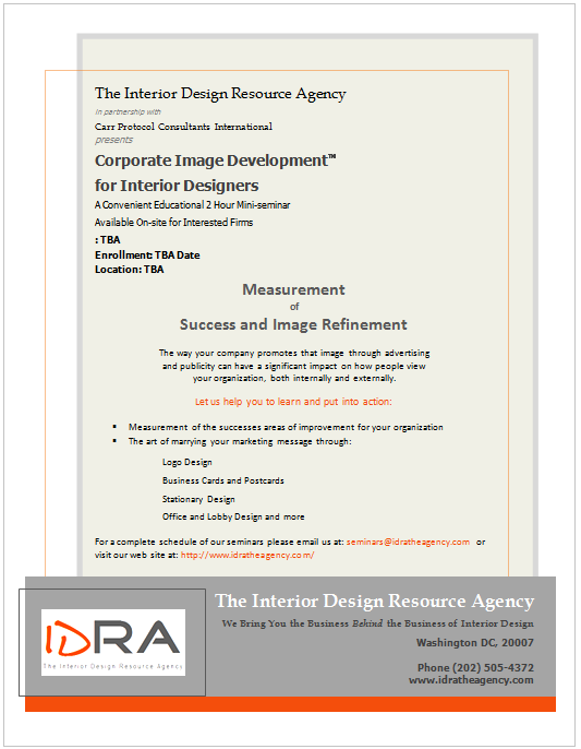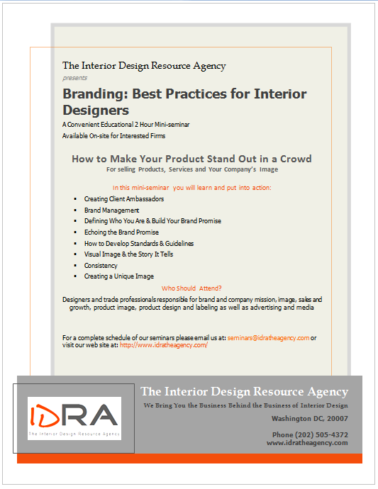 Copyright 2018 The Interior Design Resource Agency, LLC™ All Rights Reserved